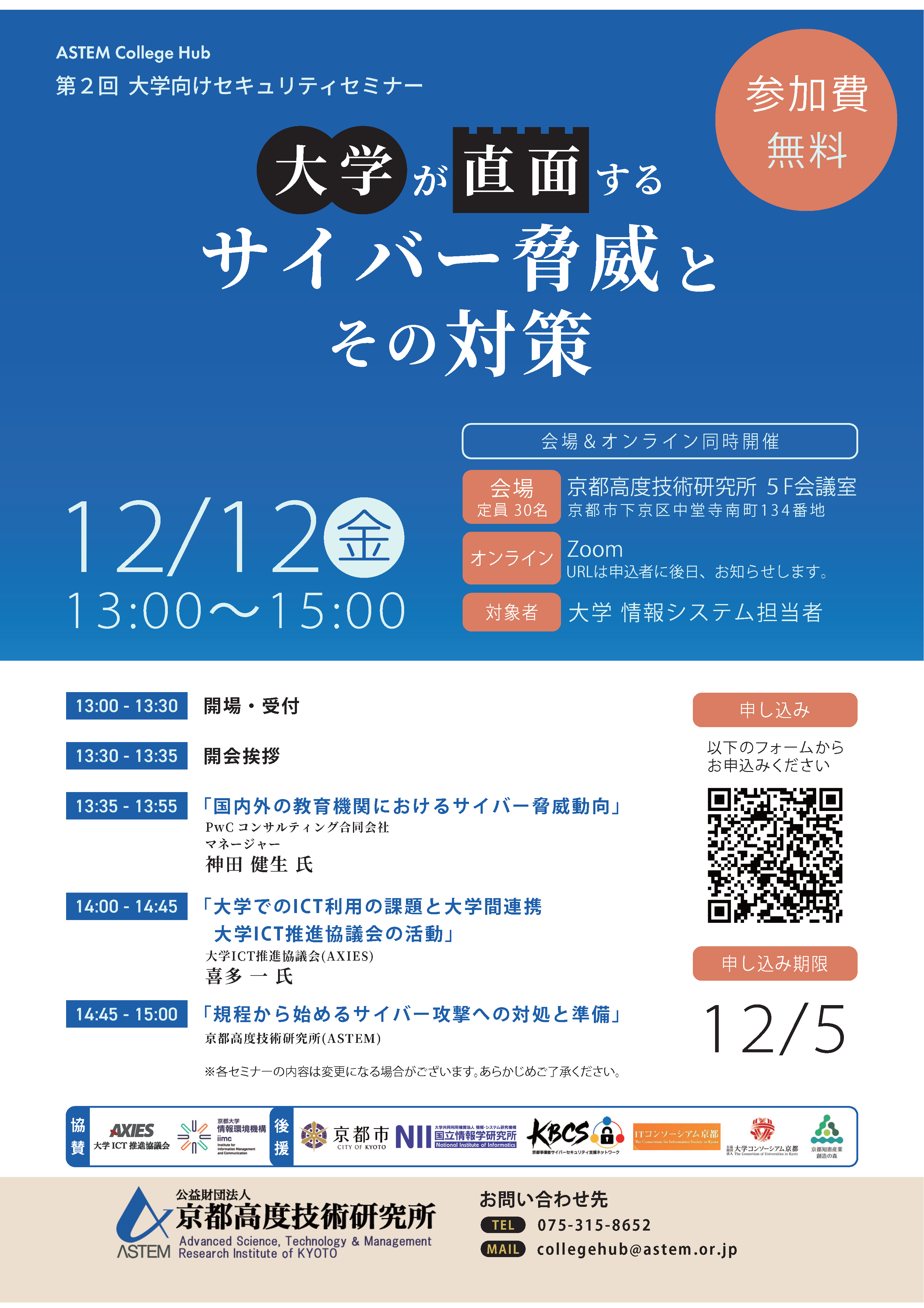 【AXIES協賛イベント】京都高度技術研究所(ASTEM)主催 第2回 大学向け セキュリティセミナー「大学が直面するサイバー脅威とその対策」(2025年12月12日(金) )