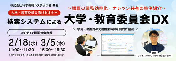 【株式会社科学情報システムズ様 ウェビナー】検索システムによる大学・教育委員会DX〜業務効率化・ナレッジ共有の事例〜(2026年2月18日(水)・3月5日(木))
