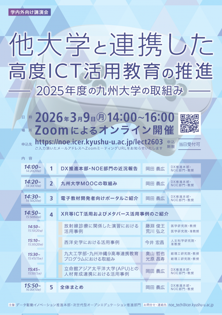 【九州大学 様 主催 講演会】「他大学と連携した高度ICT活用教育の推進」 ~ 2025年度の九州大学の取組み ~(2026年3月9日(月) )